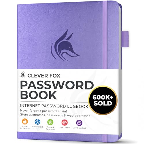 Clever Fox Passwortbuch mit Registerkarten - Adress- und Passwort-Organisationsbuch mit alphabetischen Registerkarten - Kleines Passwortbuch für Computer- und Website-Logins, Lavendel