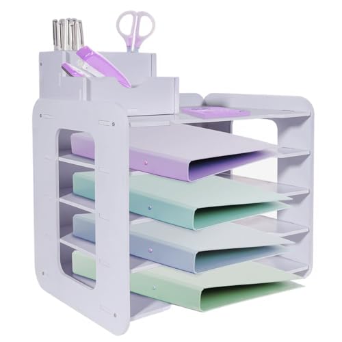 HMXLJJY Briefablage Organizer, A4 Papier Ablagefächer, 7-stöckiges Büro Aktenablage, Schreibtisch Datei Tidy Organizer mit stapelbarer Ablage Schreibtisch Papier Organizer mit Stifthalter (weiß)