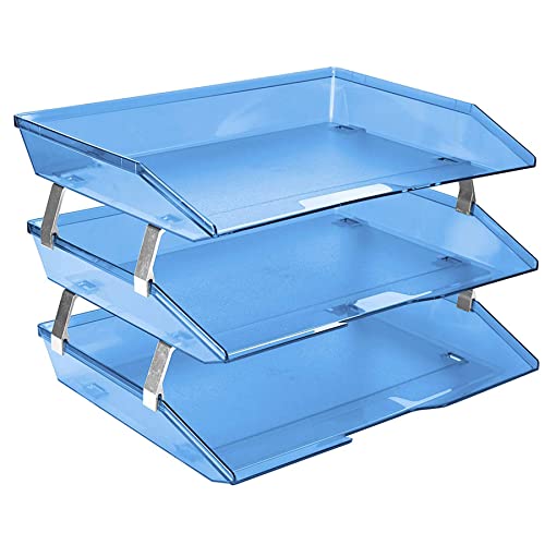 Acrimet Facility 3 Ebenen Briefablage Seiteneinschub, Letter Tray/A4,Desktop Datei Organizer, Kunststoff (Transparent Blau)
