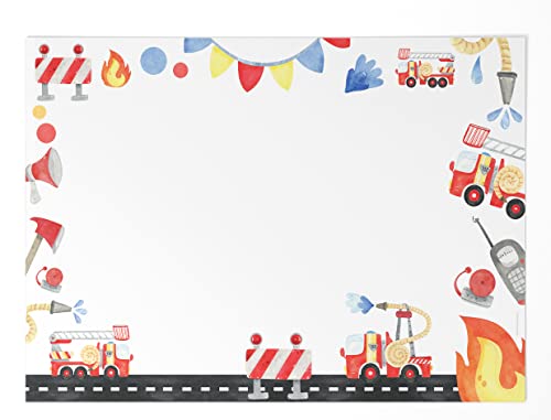 Friendly Fox Feuerwehr Schreibtischunterlage Kinder, XXL Notizblock A2 Block, Mal- und Schreibunterlage aus Papier, Kinder Schreibtischunterlage Feuerwehr Junge Mädchen