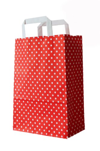 Papiertragetaschen mit Flachhenkel Punkte ROT (18 + 8 x 22 cm, 10 Stück)