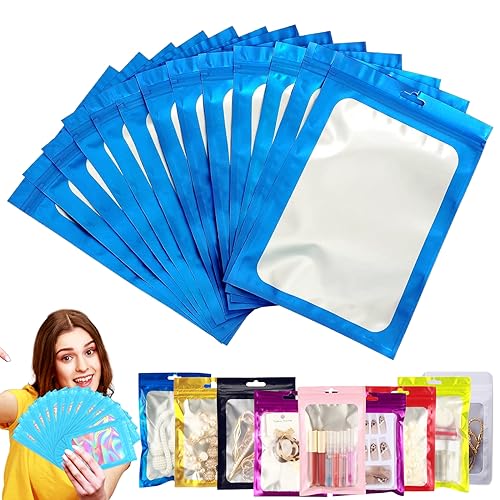 50 Stück Zip-Beutel Medium Mylar Bags Blau Holografisch 14x20cm, Wiederverschließbar, Geruchsdicht, Ziplock für Schmuck, Lebensmittel, Kleine Unternehmen