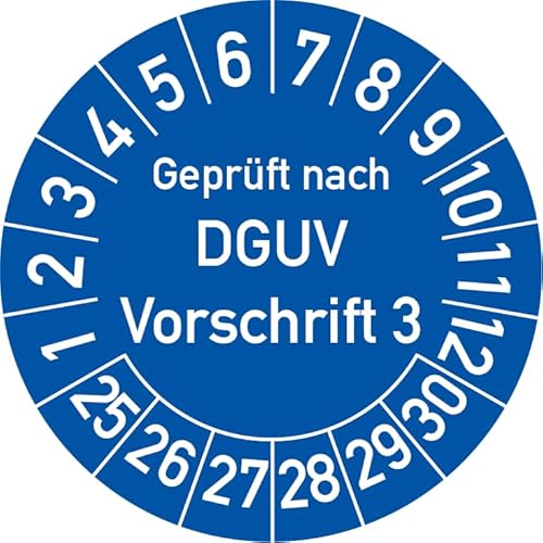 Geprüft nach DGUV Vorschrift 3 Prüfplakette, 100 Stück, in verschiedenen Farben und Größen, Prüfetikett Prüfsiegel Plakette DGUV V3 (35 mm Ø, Blau)