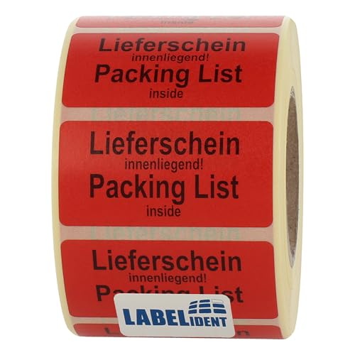 Warnetiketten 50,8 x 25,4 mm - Paket Aufkleber Lieferschein innenliegend! Packing list inside - 1.000 Versandaufkleber auf 1 Rolle(n), Papier selbstklebend