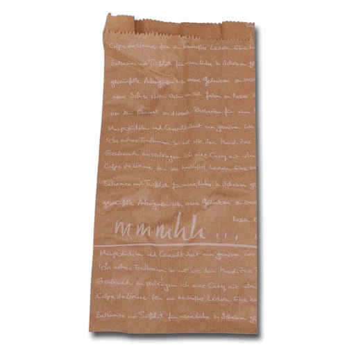 Wertpack 1000x Bäckerfaltenbeutel mmmhh, Kraftpapier, Braun/Weiß, 14 + 6 x 28 cm