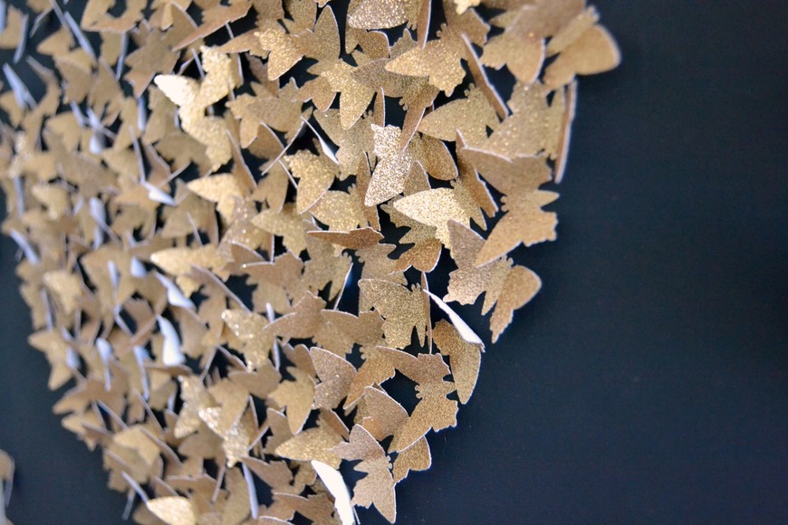 Während die Acrylfarbe trocknet, die benötigten Schmetterling ausstanzen. In der Größe 1,5'' benötigst du etwa 200 Schmetterlinge.