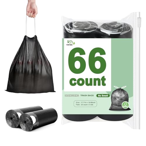Kleine Müllbeutel, 1,2 l Kordelzug, schwarze Badezimmer-Müllbeutel, reißfreie Müllbeutel, Kunststoff-Müllbeutel für WC, Zuhause, Büro und Schlafzimmer, 66 Stück