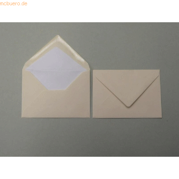 Briefhüllen; Format: 114x162 mm (DINC6); Verschluss: Nassklebung; Material: Gerippt; Farbe: chamois; Grammatur: 100 g/qm; Fenster: ohne Fenster; Innendruck: Seidenfutter Weiß;