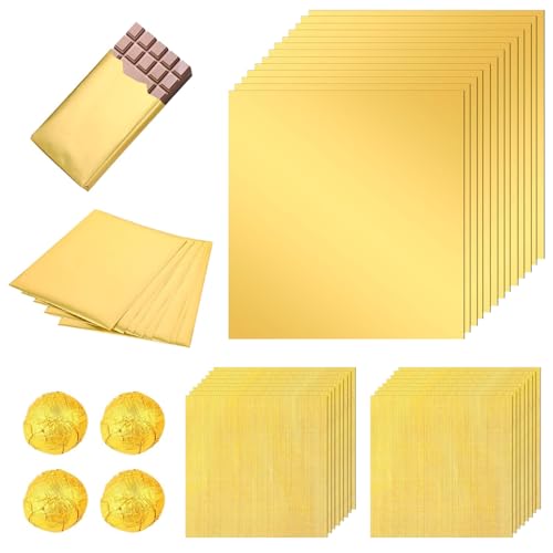 CutitiUU 300 Stück Folie Papier Wrapper Goldpapie zum Basteln Schokoladen Verpackung Papier Geschenkpapier aus Aluminiumfolie Bonbonpapier für DIY Süßigkeiten und Schokoladenverpackung