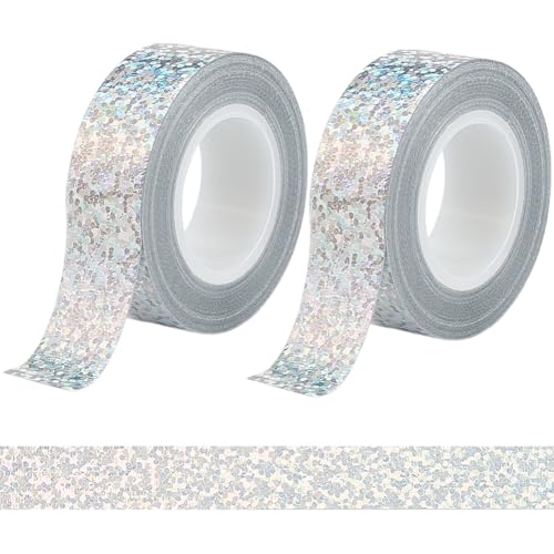 craspire 2 Rolle Silbernes Glitzerklebeband Funkelnde Maskierung 15mm X 5 m Folie Silberne Holografische Scrapbook Verzierung Kunstdruckpapier Klebebänder Für Heimwerker Scrapbooking Journale Planer