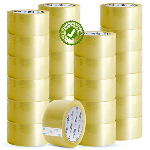 OFITURIA m-office Transparentes Klebeband, selbstklebendes Verpackungsband für Kartons, Versand, Umzüge und Handwerk, sicheres und robustes transparentes Papier (36 mm x 120 m, x24)
