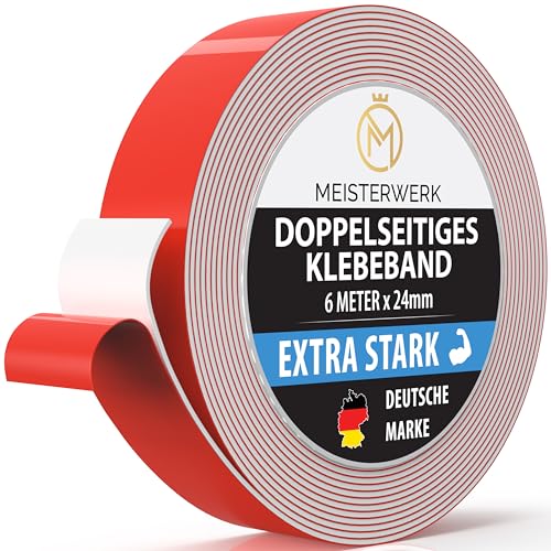 MEISTERWERK Doppelseitiges Klebeband ohne Bohren - [EXTRA STARK] - Universelles Montageband I Doppelseitiges Klebeband stark I Doppelklebeband klebeband (5m x 24mm)