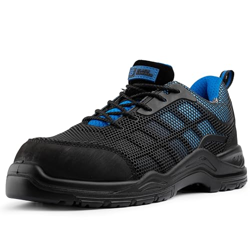 BLACK HAMMER Sicherheitsschuhe Herren Wasserdicht Ultraleichte Verbundwerkstoff Metallfrei Zehenkappe Kevlar Mittelsohle Arbeitsschuhe Knöchel Wanderer S3 SRC 8007 (40 EU, Blau)