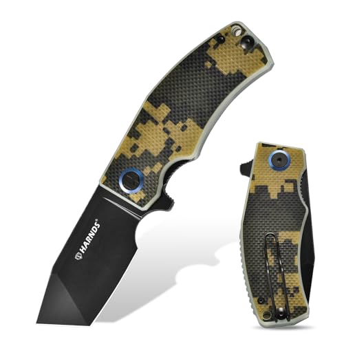 Harnds Taschenmesser D2 Stahl Klappmesser Tanto Klinge EDC Messer mit Taschenclip, G10 Griff, Scharfe Camping Messer Revenant (Camo-Schwarz Titan dann Stonewash)
