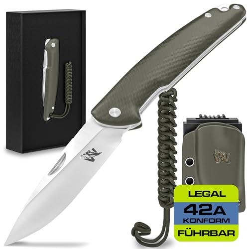 UNIVERSAL EINSETZBAR - Egal, ob Du das NIGRUM Klappmesser als Rettungsmesser, Angelmesser, Survivalmesser, Wandermesser oder Camping Messer nutzen möchtest - Dein Profi Folding Knife ist stets einsatzbereit. STYLISCHE GESCHENKBOX - Du suchst etwas Hochwertiges und Stabiles? Etwas, das sich auch hervorragend als Geschenk eignet? Mit dem Wolfgangs Survival Outdoor-Messer bereitest Du ganz einfach eine große Freude! PRAKTISCH UND GRIFFBEREIT - Starkes Set zusammen mit einem praktischen Kydex Holster. Ob am Gürtel oder Rucksack befestigt, ist es als Campingmesser in der Wildnis, Angeln und Schnitzen stets schnell griffbereit. HOCHWERTUG UND STABIL - Das Zweihand Messer aus Highend D2 Stahl lässt Dich dabei nicht im Stich. Draußen beim Wandern oder auf der Reise im Auto verrichtet unser Taschenmesser stets ausgezeichnete Arbeit. LEGAL IN DEUTSCHLAND - Unser leicht handhabbares und besonders hochwertig verarbeitetes Klapp-Messer, ist ein speziell konzipiertes Zweihand-Messer, das in Deutschland öffentlich mitgeführt werden darf.