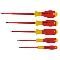 Bringt Ihre Projekte erfolgreich zum Abschluss – das wiha Schraubendreher-SetMit dem wiha Schraubendreher-Set haben Sie für jede Schraubarbeit das richtige Instrument zur Hand. Dieses vielseitige Set liefert Qualität, Vielseitigkeit und Zuverlässigkeit in einem Paket. Immer das richtige Exemplar zur Stelle zu haben, ist gar nicht so einfach. Mit diesem Werkzeugsatz sind Sie sehr gut ausgestattet, sodass Sie damit viele unterschiedliche Schraubarbeiten erfolgreich erledigen können. Konkret sind diese Komponenten enthalten: 5teilig Schneidenbreite x Klingenlänge mm: 2,5 x 75 / 4,0 x 100 / 5,5 x 125 / 6,5 x 150 / 8,0 x 175.DIN-geprüft für höchste ZuverlässigkeitGut zu wissen: Das Produkt ist DIN-geprüft und zeichnet sich durch höchste Qualität und Verlässlichkeit aus. Bei der Prüfung wurden alle relevanten Parameter und Merkmale gemäß der Norm 5264 untersucht.Diese Besonderheit zeichnet den Artikel ausDiese besondere Eigenschaft warten auf Sie: Direkt auf die Klinge gespritzte Schutzisolation - SoftFinish®-Griff mit Abrollschutz.Hochwertige Klinge aus Chrom-Vanadium-StahlDer Griff besteht aus Kunststoff und hat eine sehr gute Haptik. Die Klinge besteht aus hochwertigem Chrom-Vanadium-Stahl und weist daher eine hohe Verschleißfestigkeit auf.Ausschlaggebend: das SchraubenprofilFür einen richtigen Werkzeugeinsatz müssen Sie natürlich wissen, wie das Schraubenprofil geformt ist. Es handelt sich hier um dieses Profil: Schlitz.Sie möchten leichter und schneller arbeiten?Machen Sie sich die Arbeit leichter und bestellen Sie das wiha Schraubendreher-Set einfach hier bei uns online!