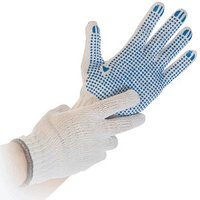 Atmungsaktiv und griffig: HYGOSTAR unisex Arbeitshandschuhe Structa weiß Größe 8, 12 PaarDer weiße Arbeitshandschuh Structa von HYGOSTAR besteht aus Baumwolle-Polyester-Feinstrick und ist auf der Handinnenseite mit blauen PVC-Noppen versehen. Er wird nahtlos angefertigt und hat einen Strickbund.Der Baumwollhandschuh verfügt über eine sehr gute Passform. Er ist abriebfest und atmunsaktiv. Aufgrund seines sicheren Griffs ist der Arbeitshandschuh Structa für alle Arbeiten mit rutschigen Gegenständen geeignet. Lieferung: 1 Pack = 12 Paar.