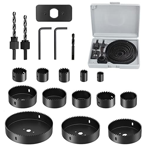 19 Stück Lochsäge Set, Sägeblattgröße 19-127 mm, mit Sechskantschlüssel, Gestänge, Montageplatte und Bohrer Lochsägen Set, für Bohren von Löchern in Edelstahl, Leichtmetall, Holz, PVC, Kunststoff